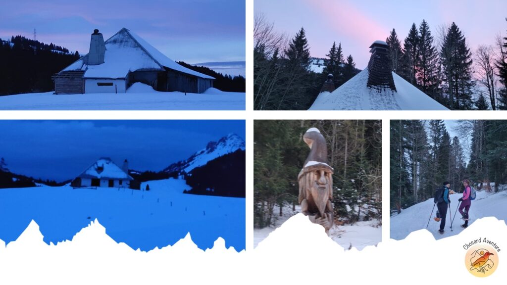 La progression en raquettes se fait dans le silence d’une station endormie. La neige crisse sous les pas,